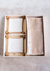 Transforma tu mesa con nuestro exclusivo set de individuales y posavasos tejidos a mano, parte de nuestra colección de regalos corporativos, donde la tradición artesanal se une a la modernidad y la sostenibilidad. Cada pieza está elaborada con hilos de algodón natural en telares tradicionales, aportando un toque de calidez y autenticidad a tus comidas.