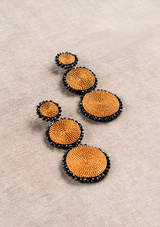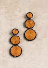 Introducing our exquisite Circle Path Earrings, a testament to elegance and innovation. Crafted with care, these earrings boast a stunning design featuring three dangling circles suspended along a captivating increasing path. Each circle, a testament to artistry, is enriched with upcycled copper wire and adorned with meticulously hand-embroidered black crystals, creating an enchanting play of light and texture.