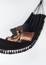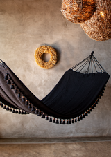 With 80 tassels on each side, accented with a touch of upcycled copper wire, these hammocks are available in both white and black, adding an elegant touch to any space. Feel the embrace of cultural identity and craftsmanship every time you relax in one of our handwoven hammocks.