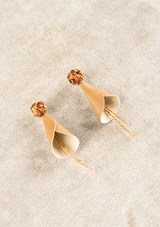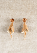 Experience the thrill of wearing jewelry that's not only fashionable, but also environmentally conscious. Adorning the earrings, a leather like tulip design with copper in the middle, which is a testament to artisanal craftsmanship. Each cone whispers tales of skilled hands weaving beauty, adding an air of elegance to your ensemble. Revel in the uniqueness of each piece, as our earrings are painstakingly handcrafted. No two knots or curves are alike, making you the proud owner of a one-of-a-kind accessory that mirrors your individuality.
