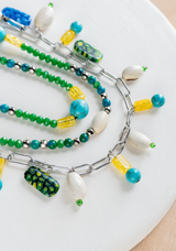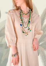 Sumérgete en la frescura del verano con el Set de Collares "Aurora Marina", una pieza que captura la esencia del mar y la energía vibrante del sol. Elaborado a mano con la delicada semilla Chilipuca, de tono blanco natural, y piedras en tonalidades verdes, amarillas y azules, este set es una oda a la armonía y la vitalidad de la naturaleza.
