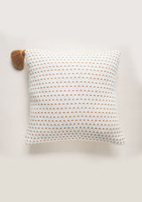 Discover a world where craftsmanship meets contemporary elegance with our exclusive Lula Mena Handwoven Pillow Collection. These square cover pillows are meticulously handwoven on traditional looms, presenting a captivating blend of cultural identity and modern design. The white base serves as a canvas for vibrant horizontal pointed lines in copper, blue, gray, brick, and turquoise, adorned with a charming tassel at the left upper corner.