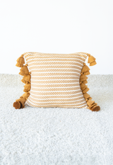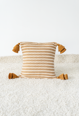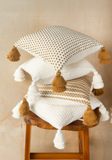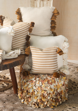 Handwoven White and Copper Flower Chain Pillow with Tassels