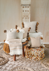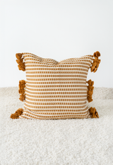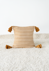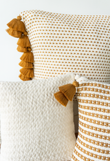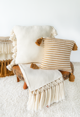 Refined, ethical, and effortlessly chic — the Handwoven Double Chain Pillow Cover blends white with a bold, double-chain pattern in copper. Each piece is handwoven by Salvadoran artisans using traditional loom techniques.